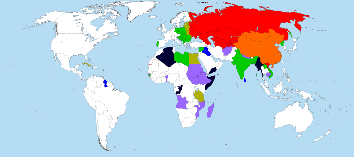 | Danh sách các nước tự tuyên bố là nước xã hội chủ nghĩa dưới bất kỳ định nghĩa nào, số năm được mã màu khác nhau: Trên 70 năm 60 - 70 năm 50 - 60 năm 40 - 50 năm 30 - 40 năm 20 - 30 năm Dưới 20 năm |